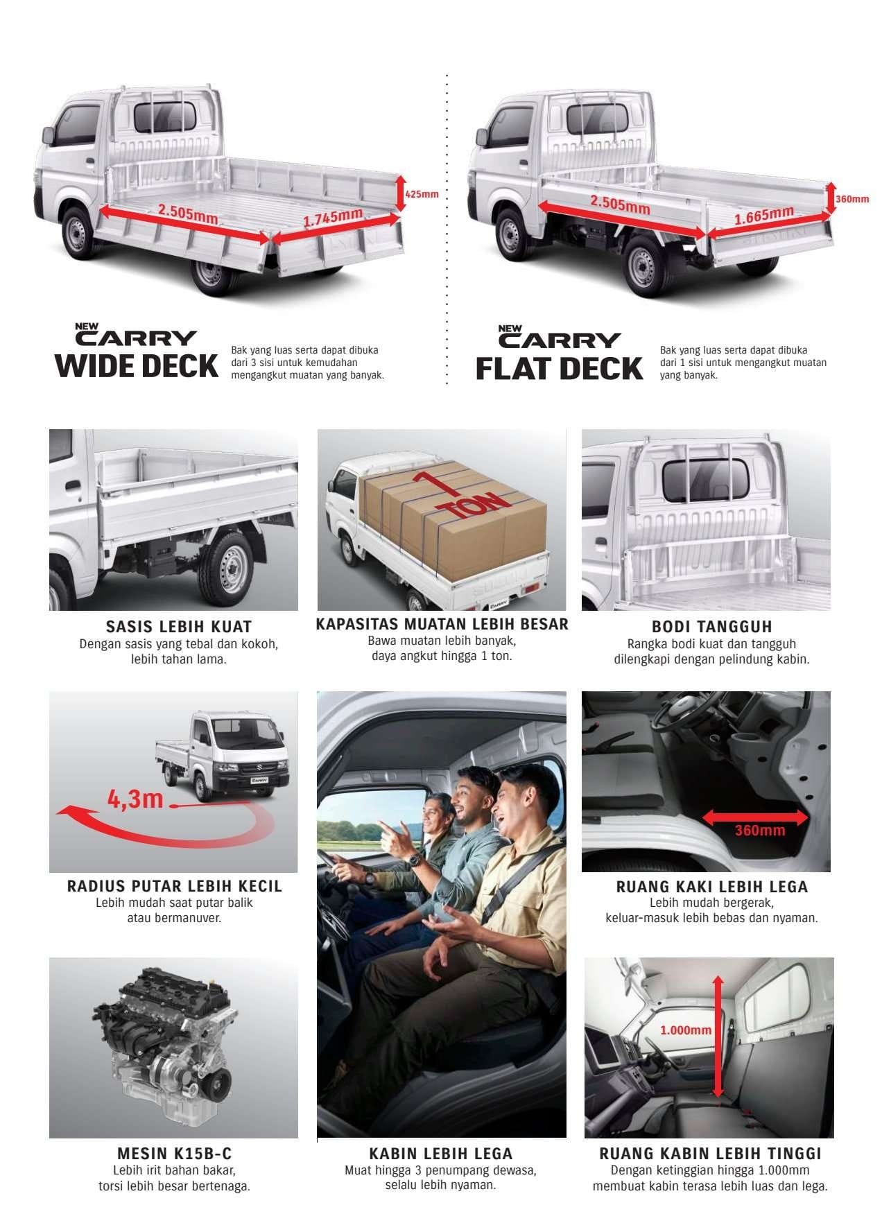 New Carry Pick Up hadir dengan tampilan baru yang semakin keren. Dilengkapi dengan desain grill dan bumper baru yang semakin tegas. Bikin pede bawa muatan dan kejar untung kemana pun.